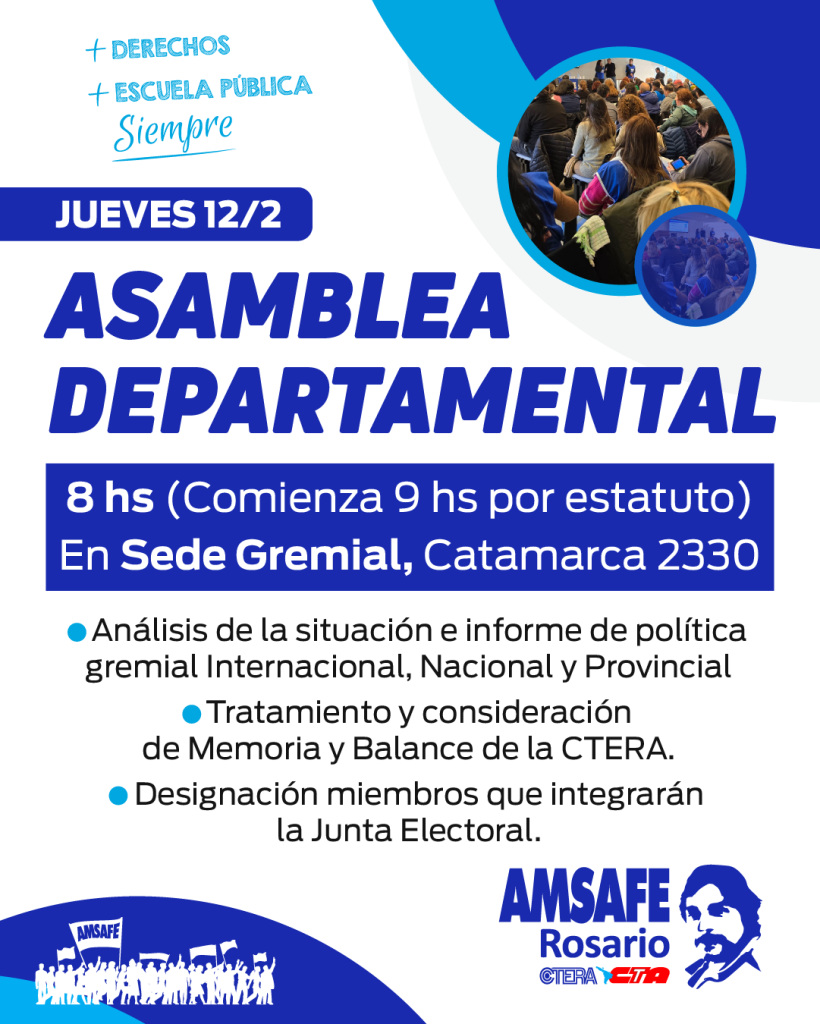 Jueves 12-2 a las 8 hs en la Sede Gremial, Catamarca 2330.