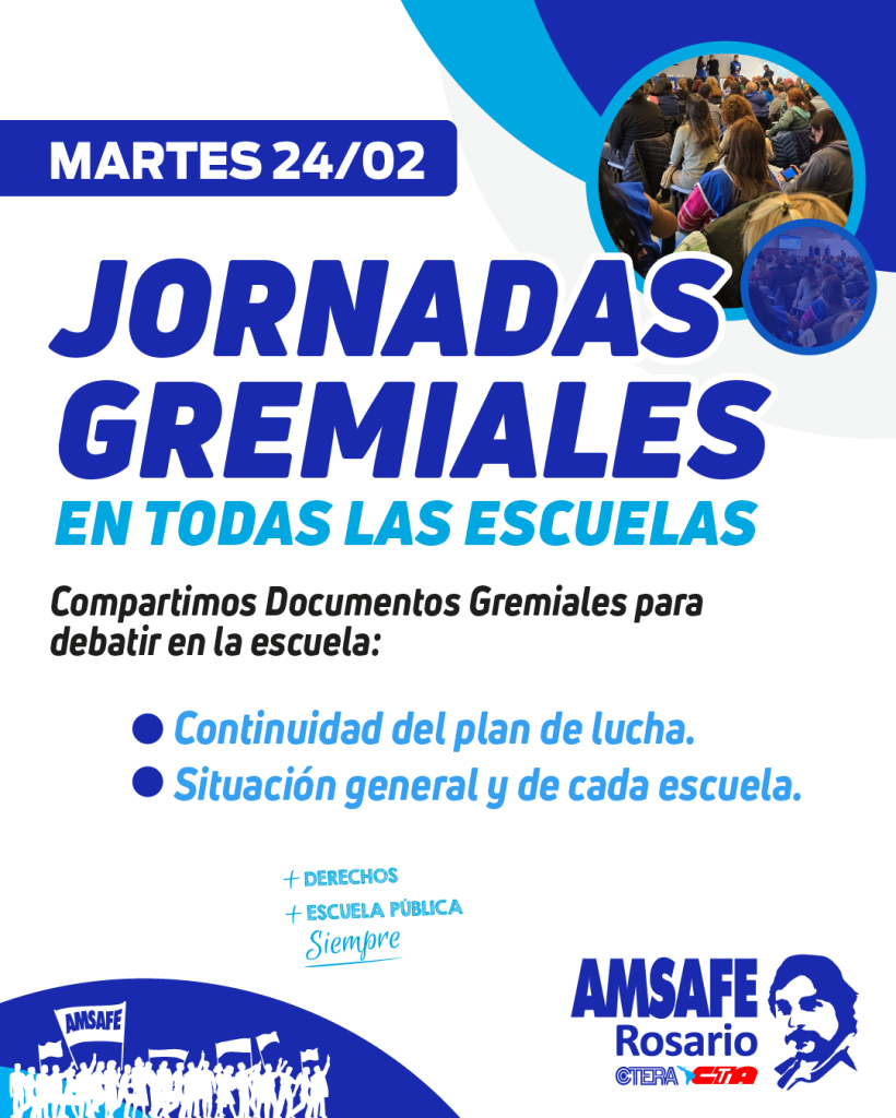 Desde AMSAFE Rosario compartimos documentos gremiales para debatir en las escuelas este martes 24/02. 📝 Nuestra situación como Docentes y nuestro Plan de Lucha 📝[...]