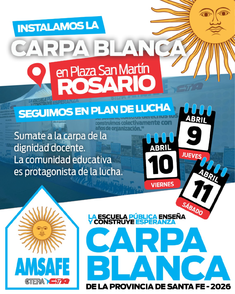 Desde el jueves 9 y hasta el sábado 11 de abril pasará la Carpa Blanca de AMSAFE con la consigna de defender el salario, las[...]