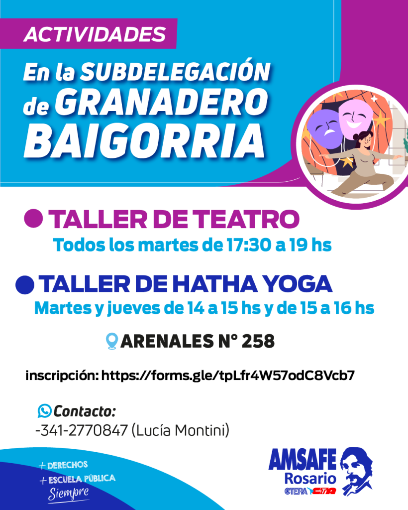 📍 Arenales N° 258 🔹 Taller de teatro para docentes Martes de 17:30 a 19 hs. Comienza el 21/10. 🔸 Taller de Hatha yoga Martes y[...]