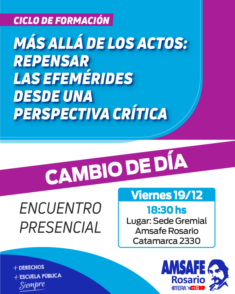 Encuentro Presencial: Viernes 19/12 a las 18:30 hs Lugar: Sede Gremial de Amsafe Rosario, Catamarca 2330.