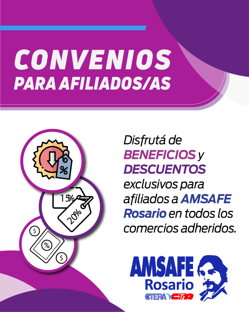 Disfrutá de beneficios y descuentos exclusivos para afiliados a AMSAFE Rosario en todos los comercios adheridos.