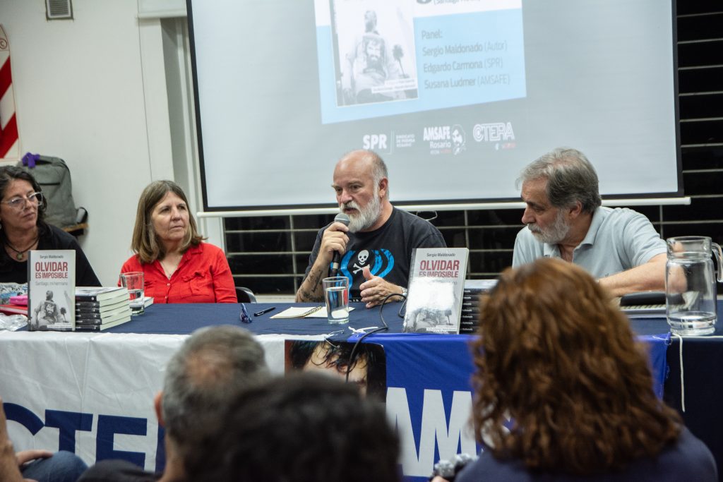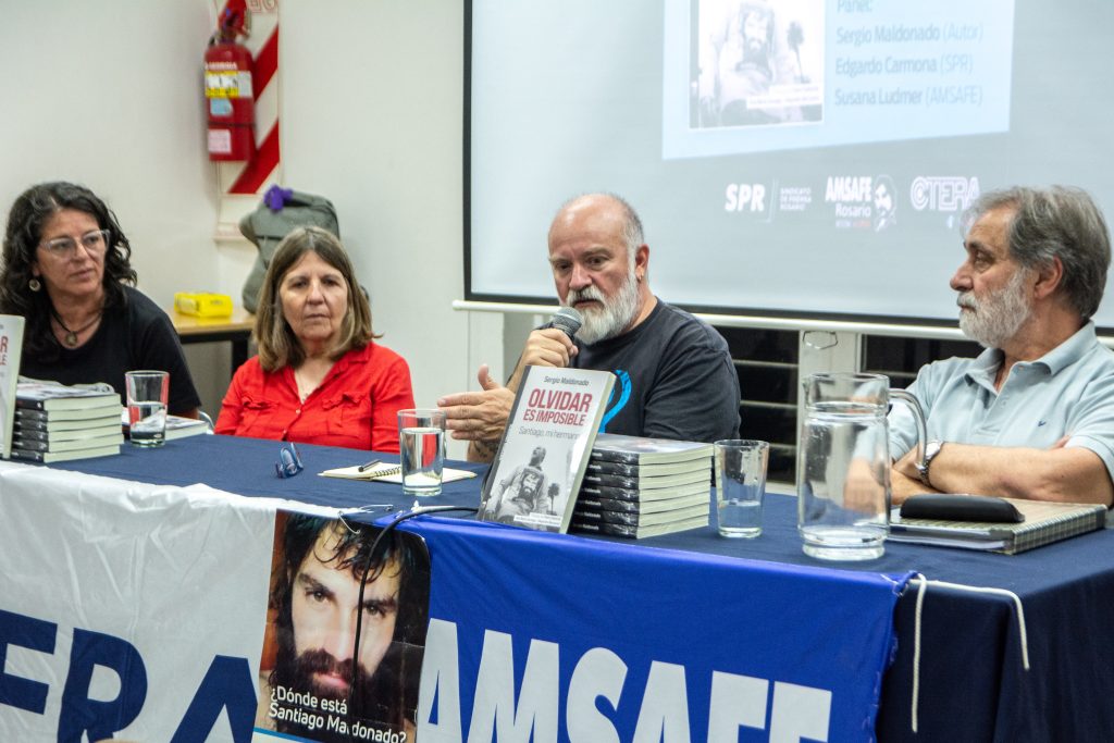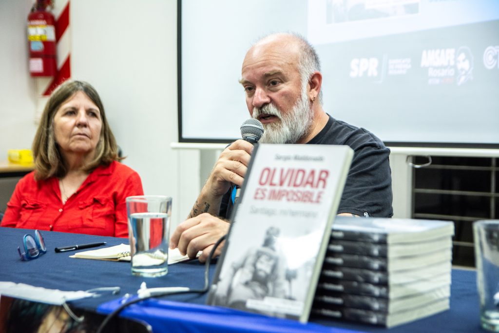 Este jueves 23/10 en el Sindicato de Prensa Rosario realizamos la Presentación del libro “OLVIDAR ES IMPOSIBLE. Santiago, mi hermano”, de Sergio Maldonado. Con la presencia del autor y ante un auditorio conmovido por el recorrido de búsqueda de justicia por la desaparición forzada de Santiago Maldonado, Sergio destacó en lo colectivo la posibilidad de llevar adelante toda su enorme lucha.