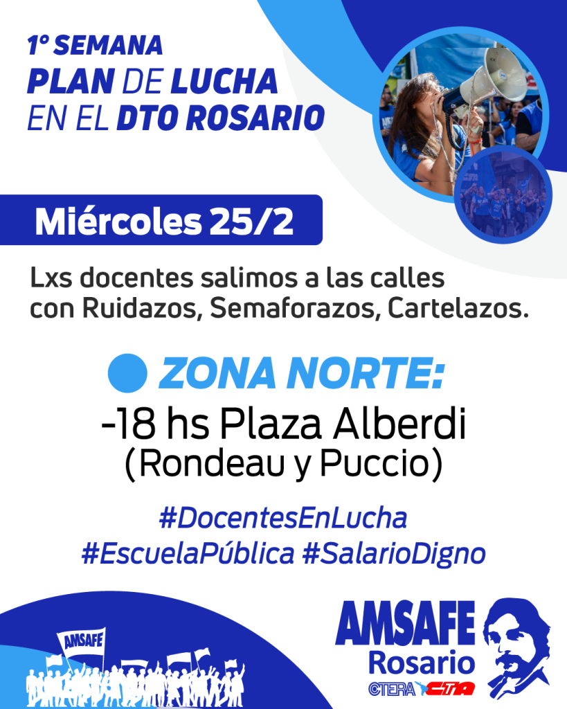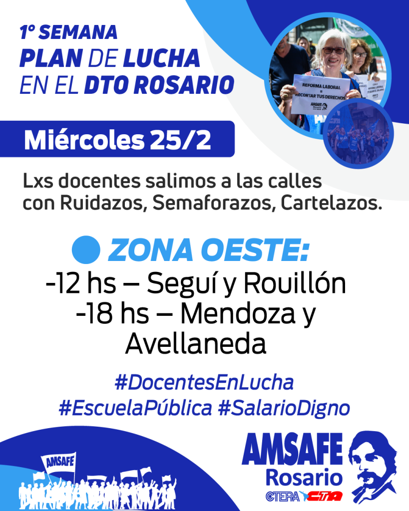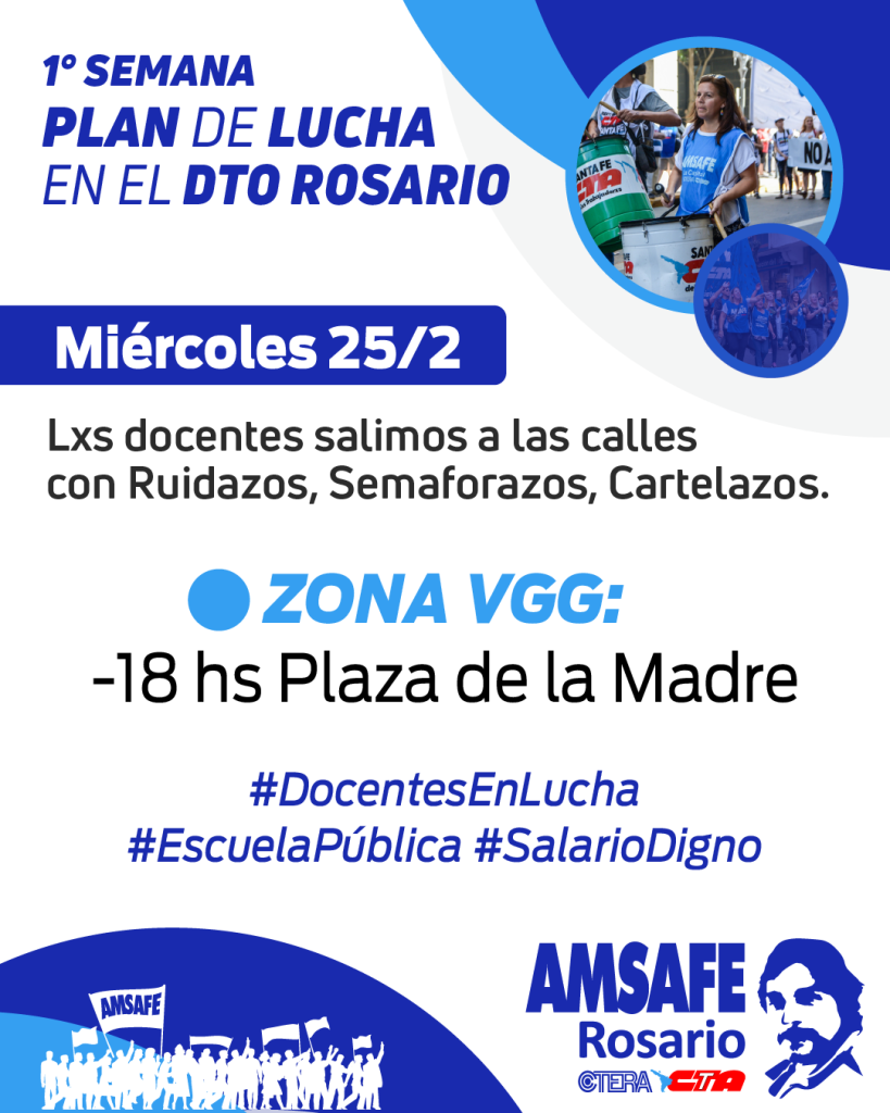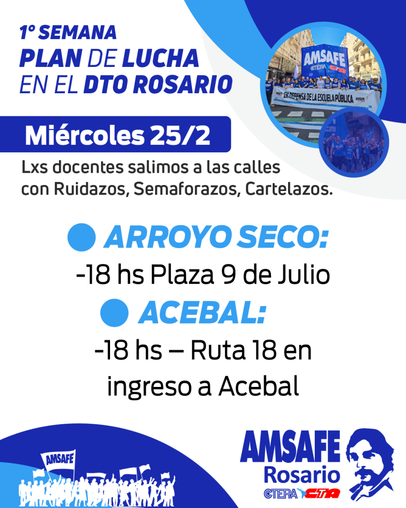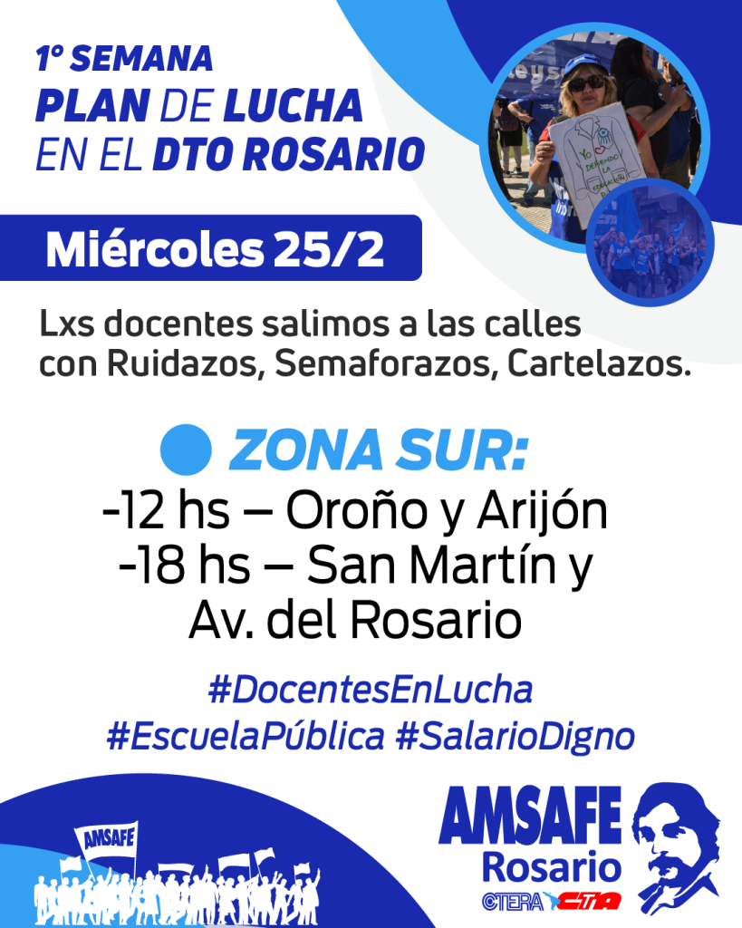 Desde AMSAFE Rosario vamos a llevar adelante distintas acciones durante la semana del 23 a 27/02 que permitan visibilizar la lucha docente.